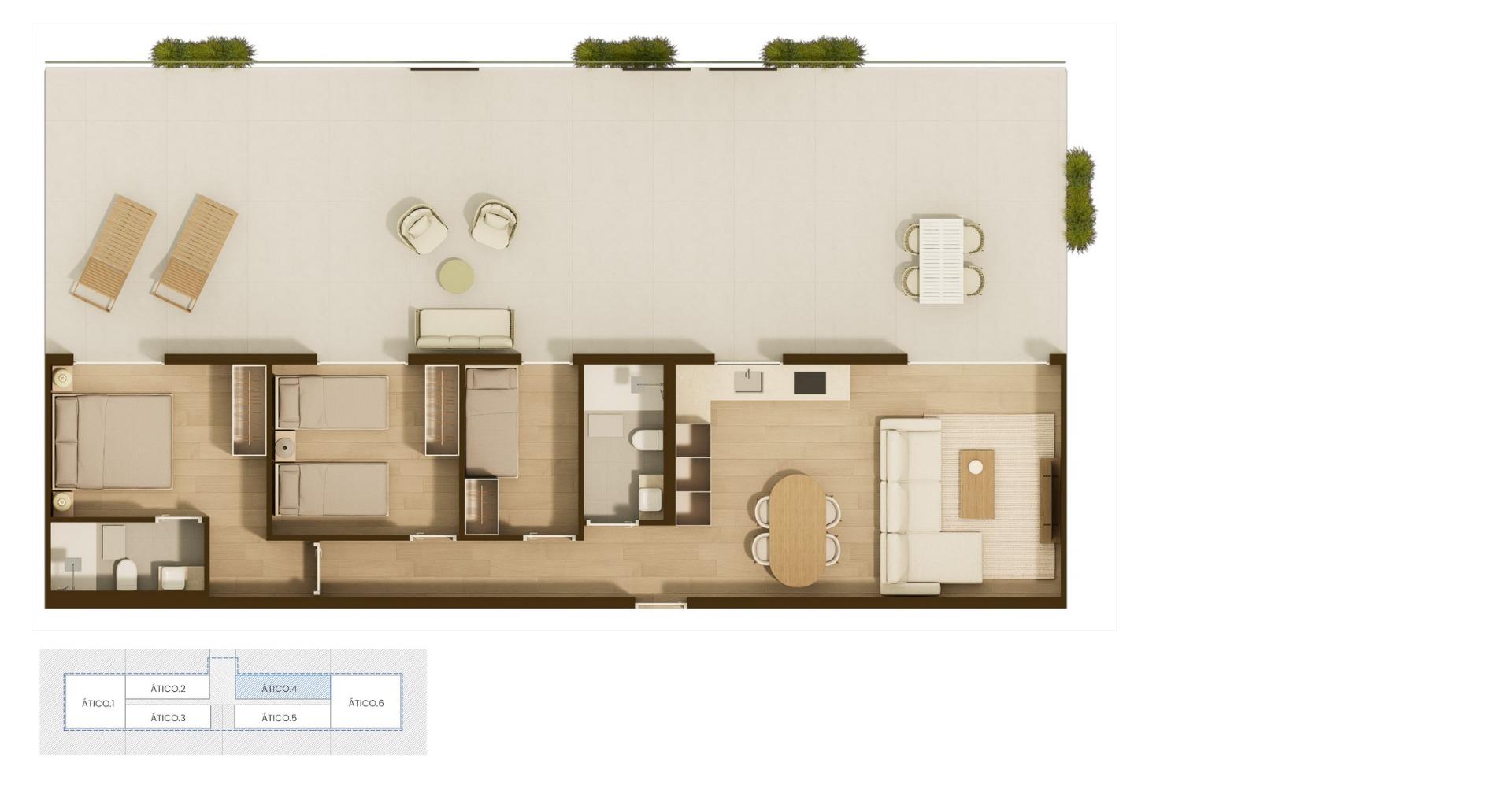 Ta wyjątkowa inwestycja składa się z 96 nowoczesnych apartamentów rozmieszczonych w stylowym 9-piętrowym budynku. Kupujący mogą wybierać spośród mieszkań z 2, 3 lub 4 sypialniami, z których wszystkie posiadają 2 łazienki, w tym jedną przy sypialni. Każda nieruchomość została starannie zaprojektowana z myślą o funkcjonalnym rozkładzie, dużej ilości naturalnego światła i przestronnych tarasach, które rozszerzają przestrzeń mieszkalną na zewnątrz.