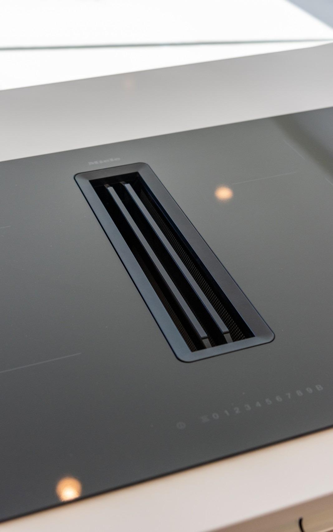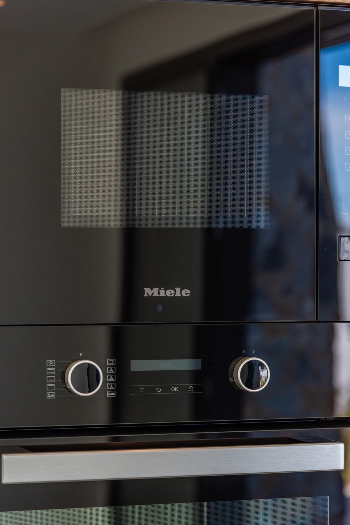 W pełni umeblowana kuchnia w białym połysku lub kolorze drewna zawiera płytę indukcyjną z wbudowanym ekstraktorem, piekarnik, mikrofalówkę, pralkę, zintegrowaną lodówkę i zintegrowaną zmywarkę.